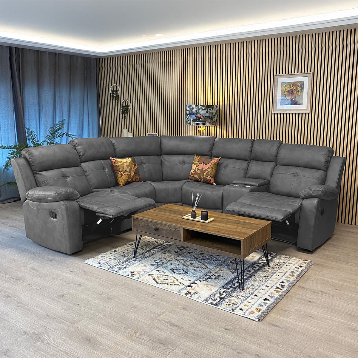 - Twilight Grey Fabric Reclining Corner Sofa