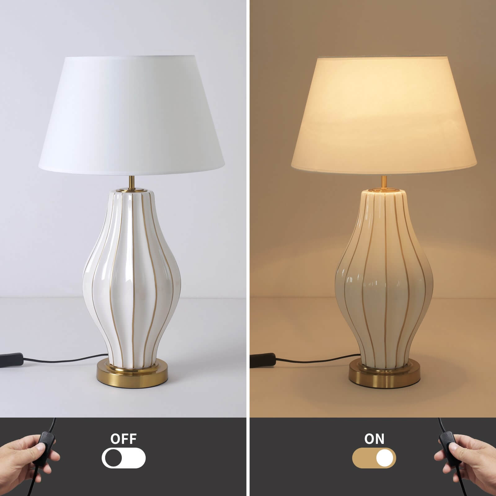 Introducing our Pamplona Lamp, a beacon of modern sophistication and timeless elegance. With its luxurious gold and cream colour finish, this lamp exudes opulence and refinement, elevating any space it graces. The sleek design, paired with a crisp white shade, creates a harmonious balance of style and functionality. Resting atop a gleaming gold base, it adds a touch of glamour to your decor.