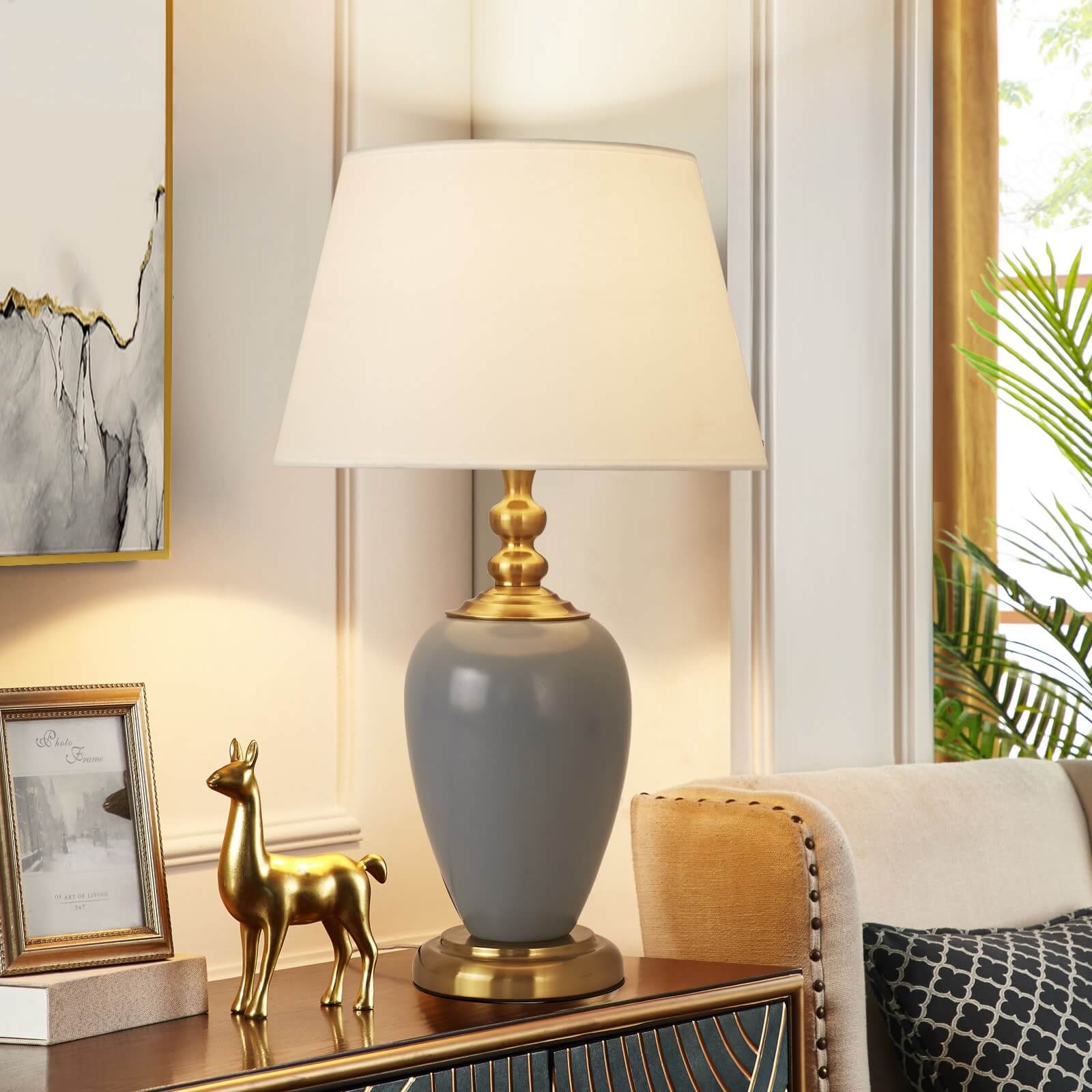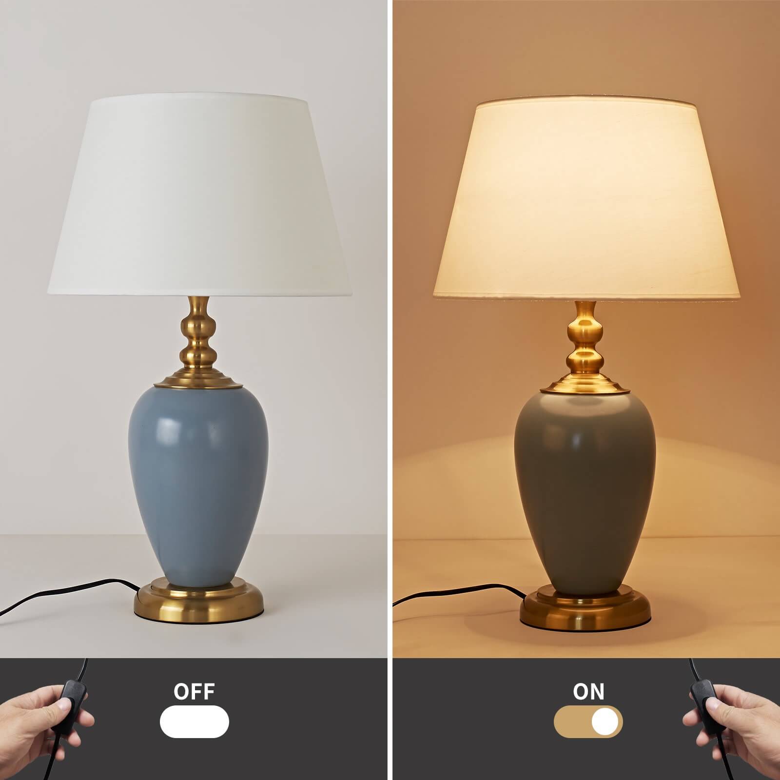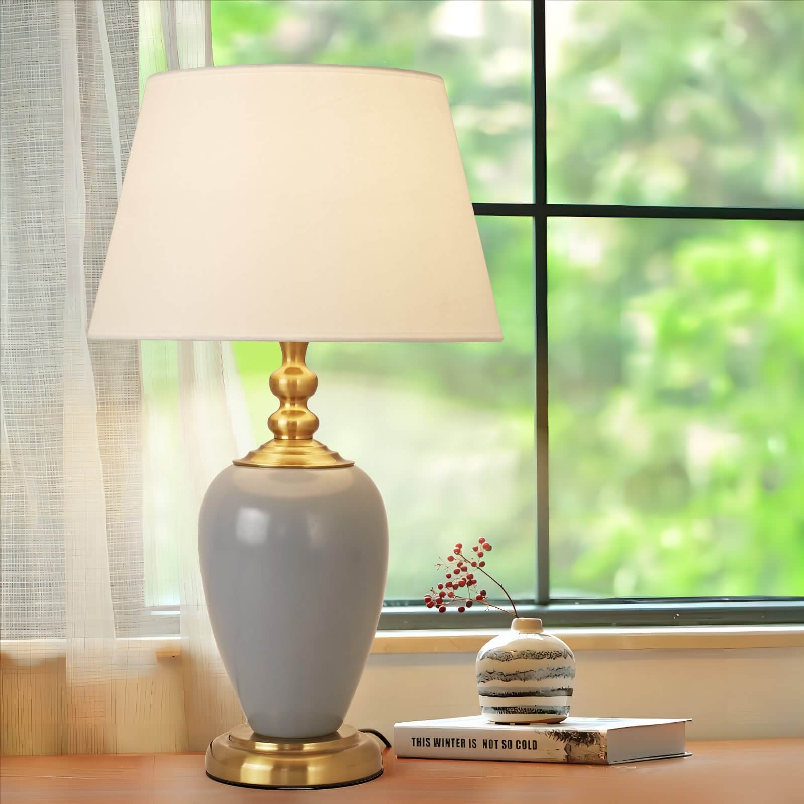 Introducing our Valladolid Lamp, a stunning embodiment of modern elegance and artistic flair. With its captivating gold, blue, and white color finish, this lamp is a true statement piece, adding a pop of color and sophistication to any space. The sleek blue body, complemented by a luxurious gold base, exudes opulence and style. Topped with a crisp white shade, it casts a soft, ambient glow, creating a welcoming atmosphere.